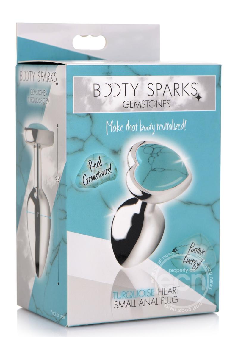 Booty Sparks Gemstones Turquoise Heart Anal Plug - Small - Blue