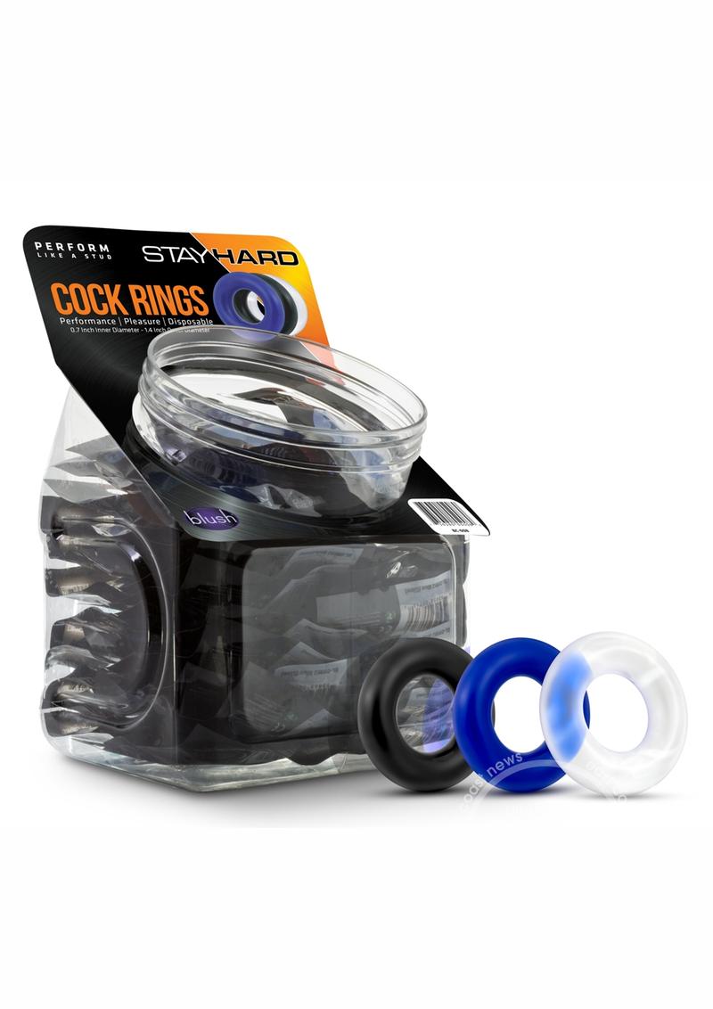 Stay Hard Donut Cock Rings Fishbowl (50 Per Bowl) - Assorted Colors